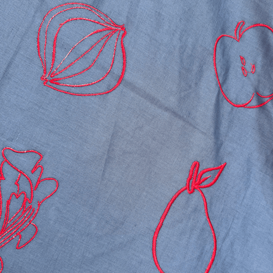 Wild Harvest in Teal - Discounted B-Quality Yardage - Custom Embroidery on Linen Cotton