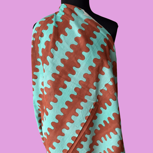 Heatwaves in Tootsie Roll - Exclusive Block Print on Organic Cotton