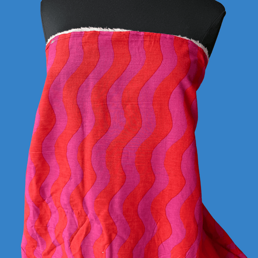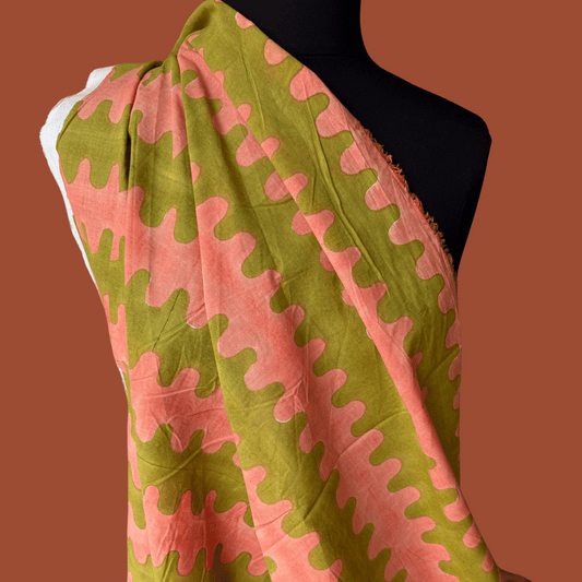 1.5 yard damaged remnant - Heatwaves in Twizzlers- Exclusive Block Print on Silk Modal