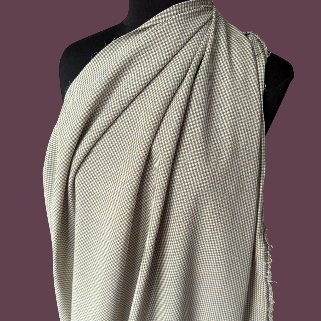 A classic olive green and white check on a soft yarn-dyed cotton. This mini check features scant 1/8 inch (0.2 cm) squares. This lovely midweight cotton would make beautiful layering pieces for fall with oversized skirts, dresses, and button down shirts. I also dream of using it for bias tape because I looove a mini gingham bias tape. 😍