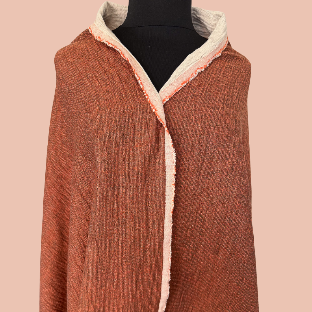 As a true double gauze, it has a naturally wrinkled, lived-in character and a gentle loft that feels both substantial and breathable. Finished in rich, earthy tones, this is a fabric that shines in pieces meant to be worn often, layered freely, and loved hard.